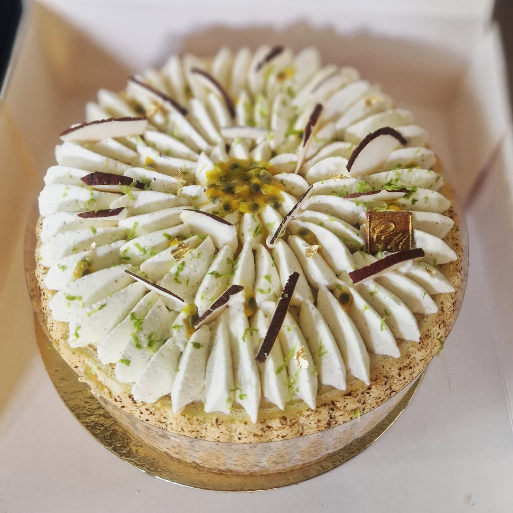 - Il se compose d’un biscuit moelleux à la noix de coco, d’un croustillant crunchy au chocolat blanc, crêpes dentelles & cubes de noix de coco, d’un crémeux fruits de la passion & mangue & d’une ganache montée à la crème de coco !