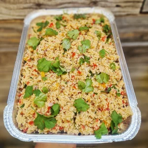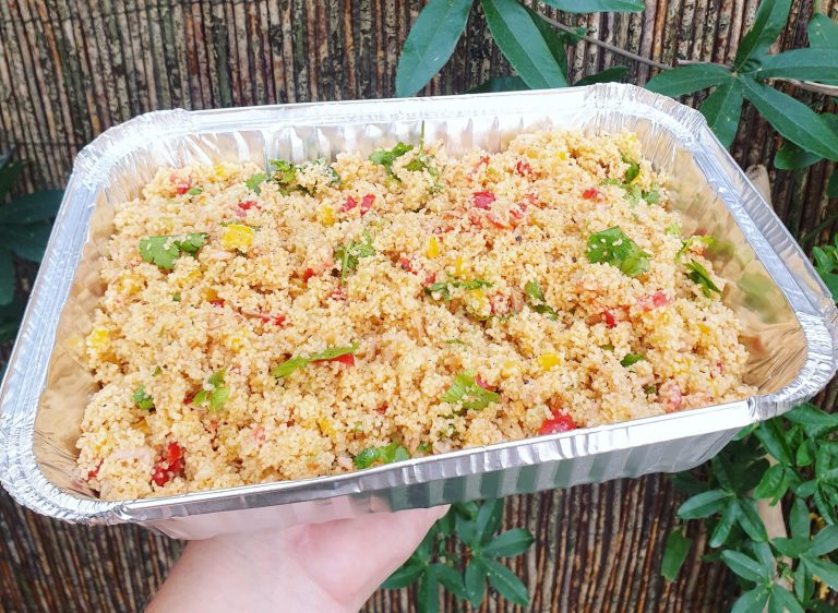 Semoule fine, légumes croquants, huile d’olive, citron, coriandre fraiche, petits oignons blancs, & morceaux de thon !